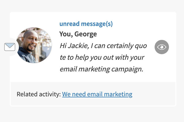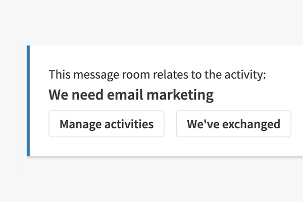 - Messages connected to a offer or exchange will have a note underneath: 'Related activity: ......'